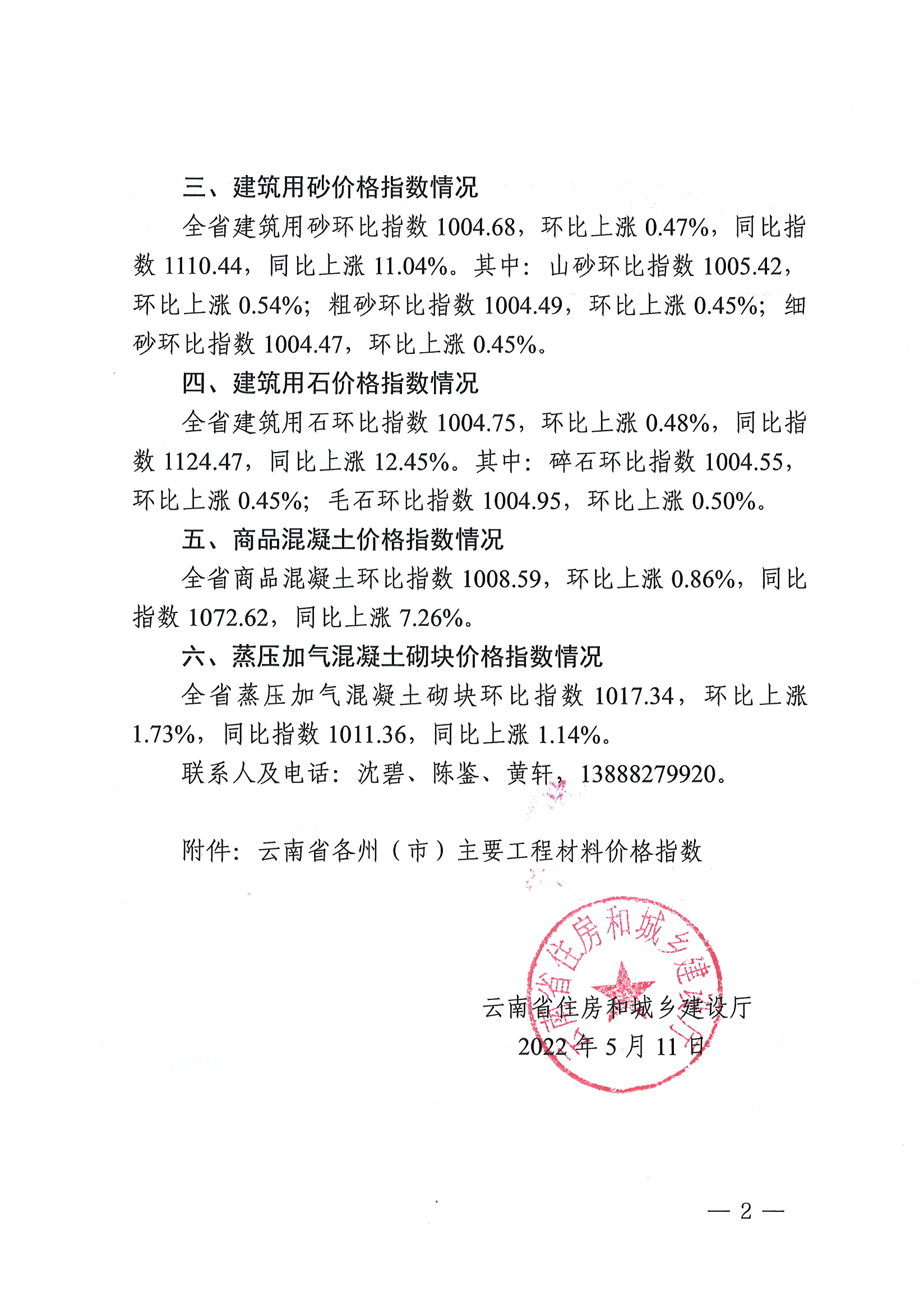 云南省住房和城鄉(xiāng)建設(shè)廳關(guān)于2022年4月云南省主要工程材料價格波動情況的通報