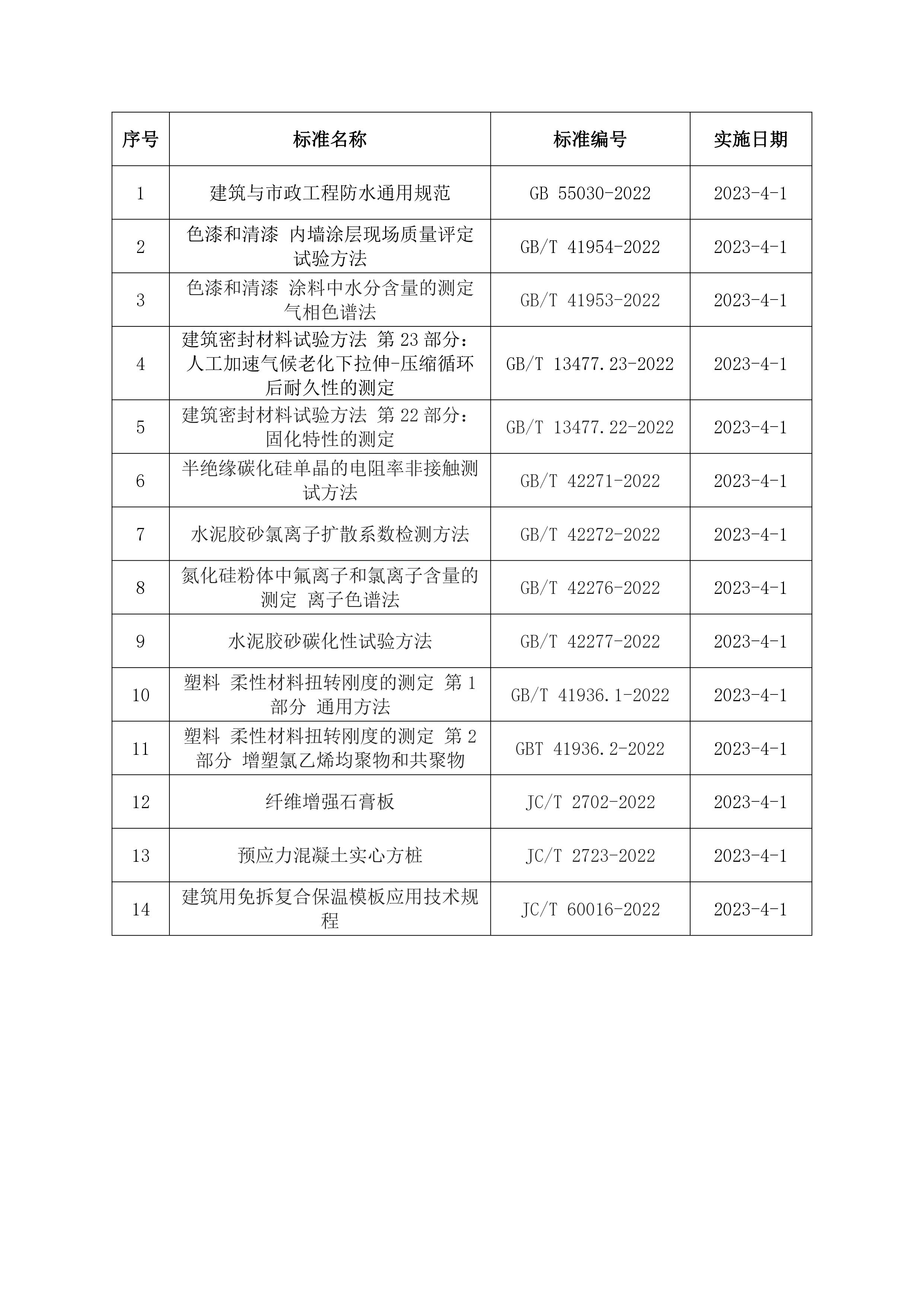 2023年4月開始實(shí)施的工程建設(shè)標(biāo)準(zhǔn)